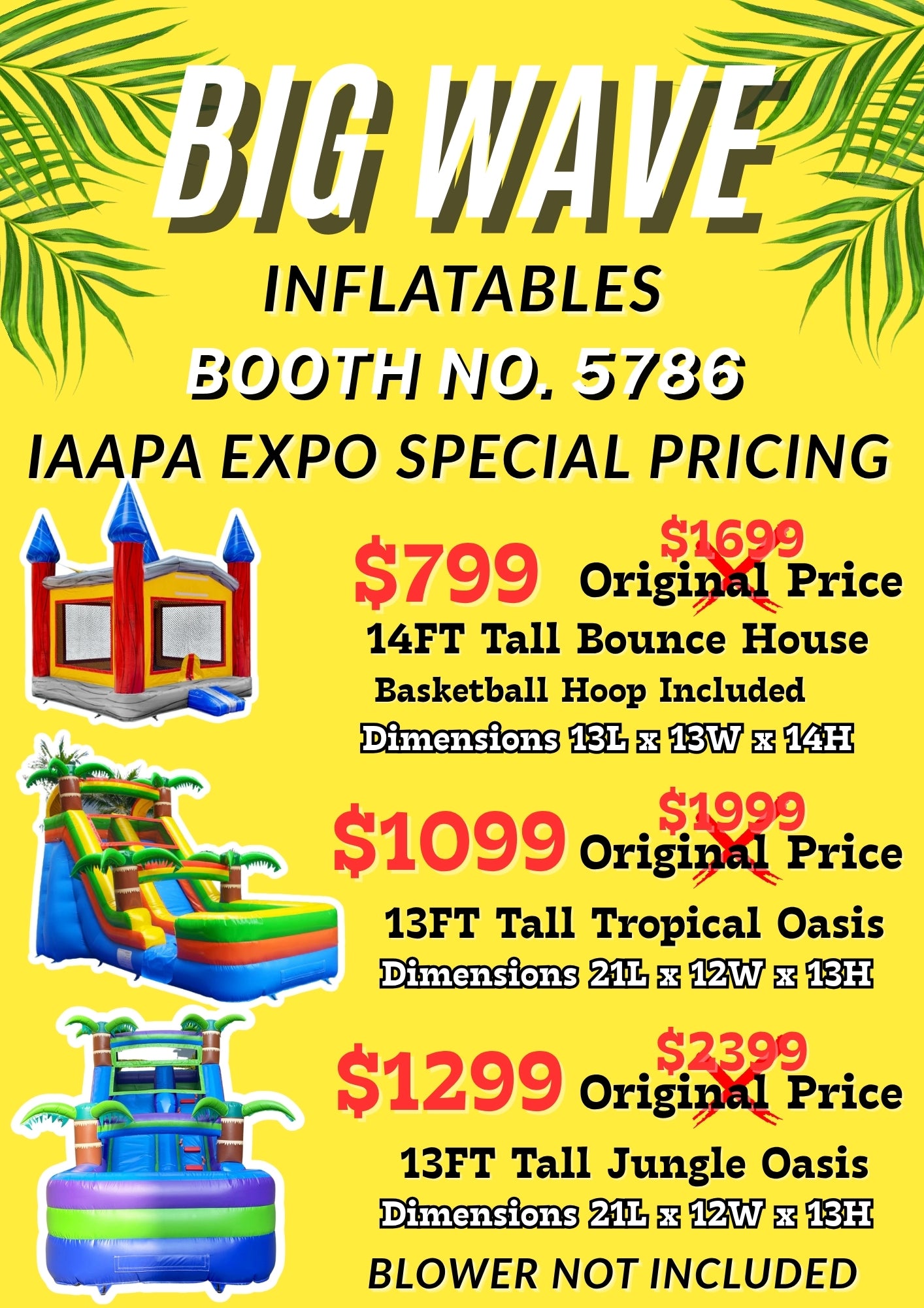 Take advantage of incredible savings for the IAAPA Expo Pricing while supplies last! Get our 13FT Tropical Oasis for just $1099 and create unforgettable memories for yourself and everyone around you.